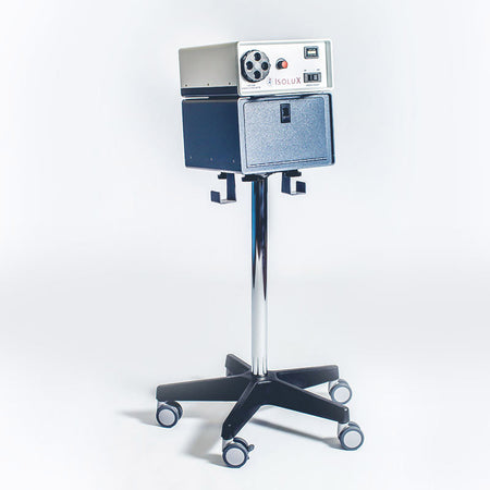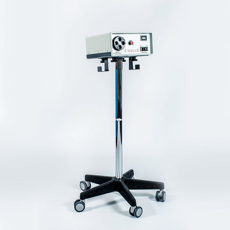The Xenon Fiber Optic Surgical Light Source uses a 300 watt light that enables the illuminator to achieve a high-intensity daylight (natural light) output as a result of the lamp’s light collection efficiency. Features a Single-Port Wolf style port for fiber optic light guides with Wolf terminal connectors for compatibility with multiple fiber optic surgical lighting products. Available with mobile stand only or stand with storage box