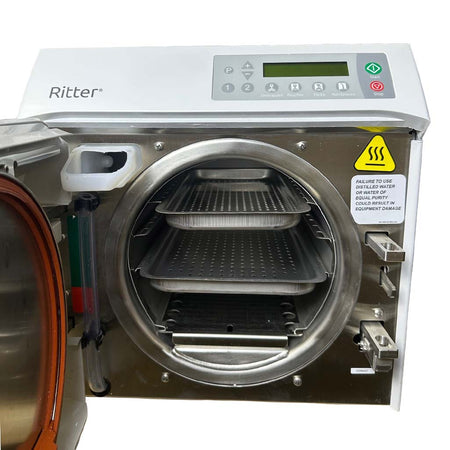 The Midmark M9 autoclave has a bright LCD display for easy viewing of the indicators, which will give an automatic alert every time the sterilization cycle is interrupted. A failure to sterilize an item inside a chamber may be caused by an operator action or by a momentary power failure, but either way, the interruption will result in a highly visible message advising the operator that items inside the chamber are not sterile.