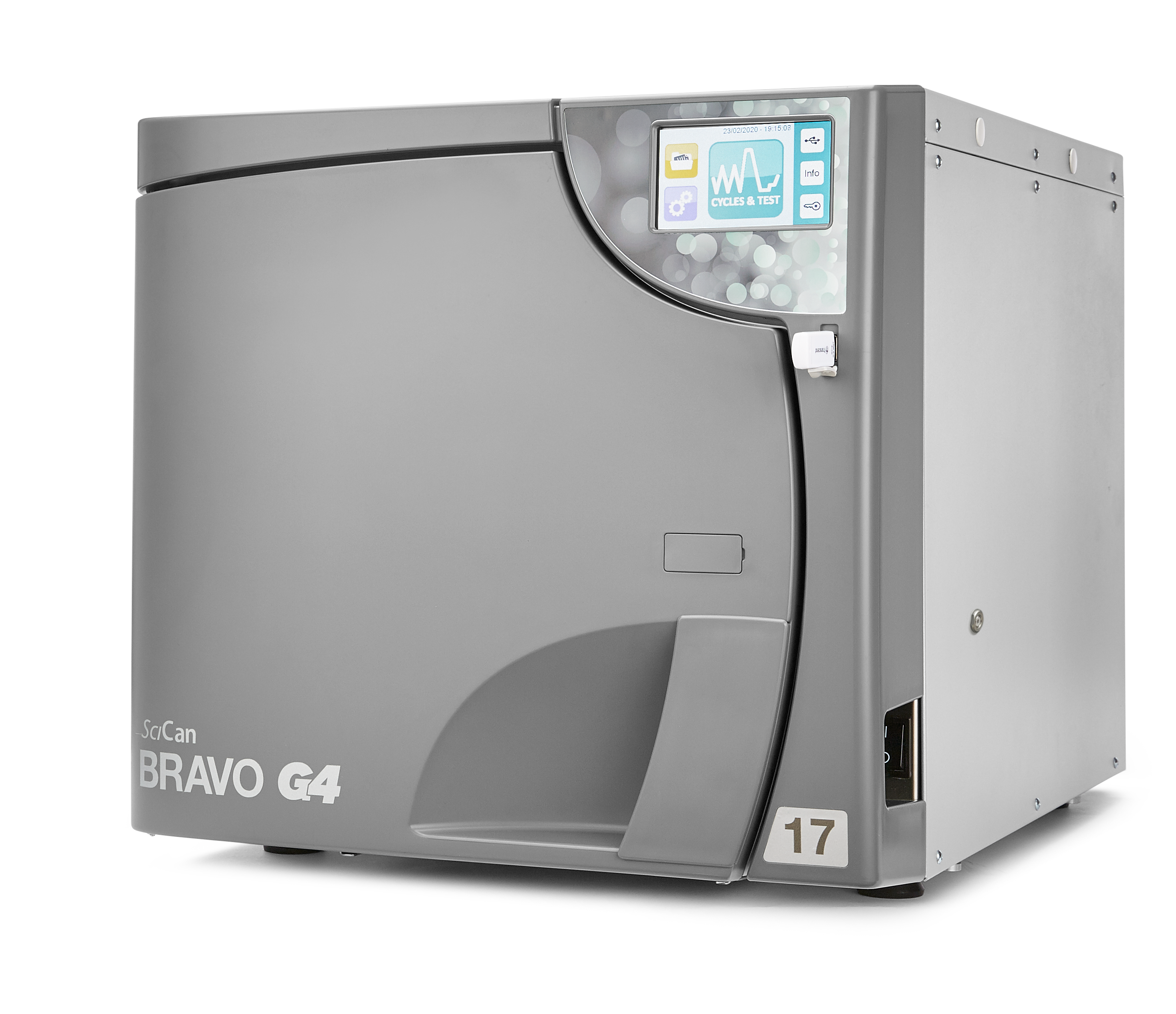 The SciCan BRAVO G4 Chamber Autoclave incorporates both pre-sterilization vacuum to improve steam penetration and post-sterilization vacuum to improve drying. The BRAVO G4 offers efficient cycle times, sterilizing and drying instruments in as little as 42 minutes. The autoclave’s 17L or 22L chamber capacity, vacuum-assisted closed door drying and efficient turnover times ensure clinicians always have an ample supply of instruments ready for use.